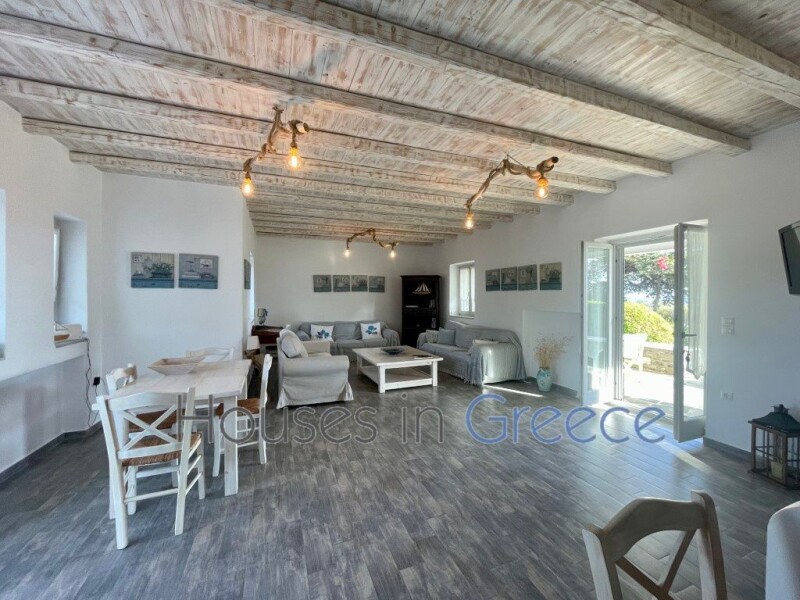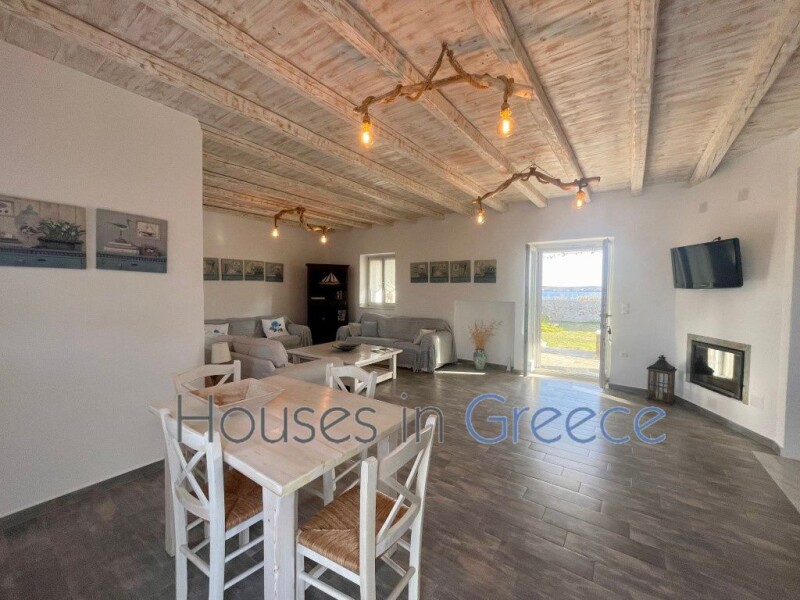 A country house that combines simplicity, traditional character and comfort just 200 meters away from Golden Beach and walking distance from Drios village. It is located in a quiet complex of just four houses, with direct access to the sea , offering stunning views and a manicured garden for exclusive use. It has an area of 120 sq.m. with open plan living and dining area, fully equipped kitchen, 3 bedrooms and 2 bathrooms. It has marble flooring, fitted wardrobes, air conditioning and heating system. The spacious terrace on the ground floor, ideal for relaxing with sea views, and the tastefully landscaped garden offer an ideal space for entertaining and gathering with friends , just 50 meters from the sea.