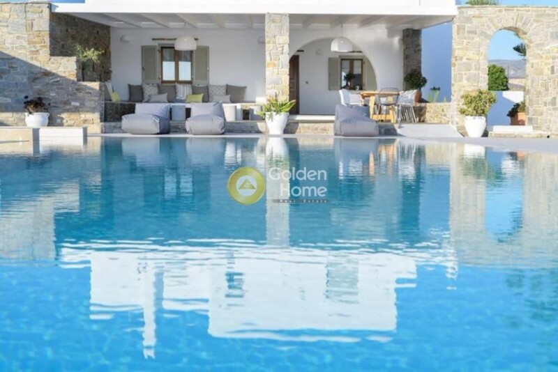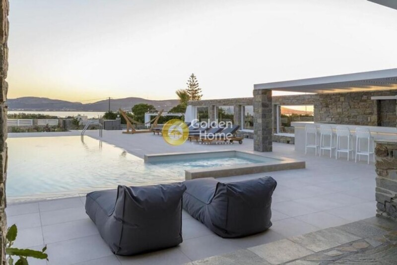 Luxury villa on sale, in one of the most known spots of the island for kite surf activities and only 10’ to Antiparos charming & cosmopolitan island, combining luxury and comfort. In a generous plot of 6,050sq.m, among beautiful garden and olive trees, you have the fully equipped 350 sq.m. villa, as well as a separate furnished and nicely decorated guest house of 55 sq.m. for enjoyable moments with friends and family. The big pool with the Jacuzzi, surrounded by comfortable sunbeds and a very well designed outdoor bar, offer a chill out area that invites the guests to relax and enjoy the spectacular sunset view. Laced with big verandas and terraces, the villa unfolds in three levels. The ground floor of 151sq.m., consists of 3 spacious bedrooms with soft, calming colors and natural light, sharing two bathrooms. Entering the property, the guest encounters a cozy open space living room perfectly integrated with a fully equipped kitchen. This space connects with the main covered veranda equipped with a comfortable sitting area and a large dinning spot with unobstructed pool and sea view. On the 1st floor there is a sunny office space, 1 bathroom and one bedroom with private loft terrace for tranquility and privacy. At the basement area of another 151 sq.m. the guests can have some extra fun at the playroom with billiard, a fully functional kitchen and an exercise spot with gym equipment. Last the cute little guest house on the side is fully autonomous, having 2 bedrooms, 1 bathroom and an open space living room with kitchen, offering extra accommodation and privacy to the guests. The property is designed with details carefully considered and is ideal for those who seek serenity combined with fun and proximity to well-known beaches and restaurants. Don’t miss out this opportunity!.