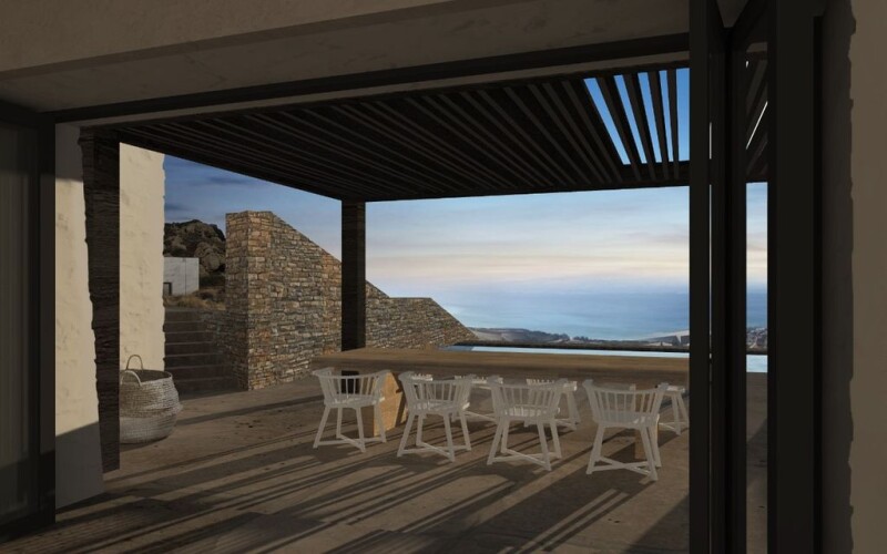 This luxurious villa located in the Southwestern part of the island of Naxos on a hill, gazing the Aegan Sea and attending one of the most impressive and famous sunsets of the Cyclades. In addition to the breathtaking view, this residence is protected from the North wind and is only facing the sea. This setting is ideal for people wanting to meet up or relax.
