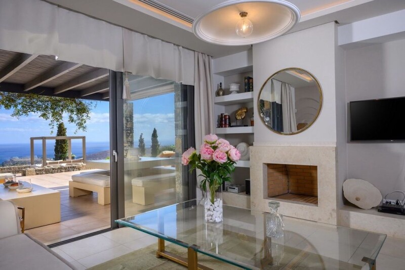 Set on a private and elevated plot of 7.850 m2 in Plaka area, this unique luxury villa comprising of two separate houses, offers breathtaking views on the sea and to the island of Spinalonga. Entering the first house of 162 m2, on the ground floor there is an open plan living – dining room and an elegant kitchen with modern appliances. On the same floor there is a bedroom with an en-suite bathroom and a WC. The first floor features two bedrooms, each one with an en-suite bathroom and balconies offering the most amazing sea views. Α veranda completes the first floor. When someone enters the second house of 132 m2, on the main floor will find an open plan living – dining room with a fitted kitchen, one bedroom with an en-suite bathroom and a WC. The upper level comprises one bedroom with en-suite bathroom and its private veranda. The cozy 40 m2 guest house consisted of one bedroom with an en-suite bathroom, a kitchenette and a living room offers extra space and privacy for your loved ones to stay. The infinity pool of 45 m2 in front, offers a beautiful setting of the endless blue for sunbathing and outdoor living. The villa additionally has an independent area of 70 m2, consisting of a gym with sauna and extra storage room. The whole plot is fully landscaped with gardens of all different kind of trees and flowers, including many outdoor seating areas. The villa has its own private and well maintained olive grove that produces fresh olive oil. There is also an autonomous water well for the water of the villa and two fully independent photovoltaic systems. Behind the villa there is a shaded parking area for three cars. This property is located 3.2 km from the beach of Plaka and Spinalonga, 18.8 km far from Agios Nikolaos and approx. 61 km from Heraklion airport.