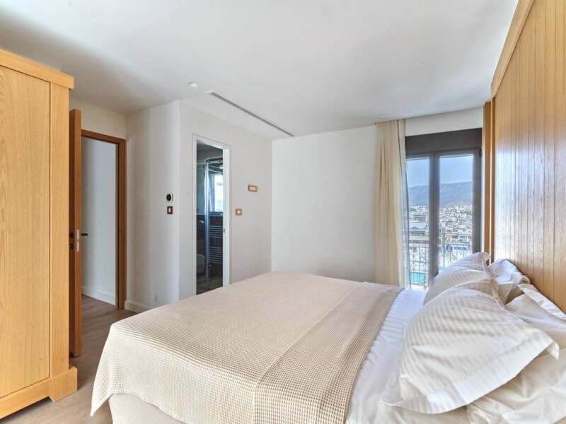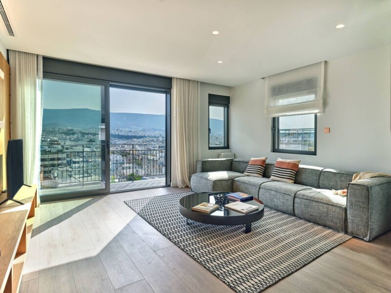 This renovated penthouse apartment in central Athens offers views of the Acropolis. The 112 sq.m. residence features a blend of contemporary and Art Deco design, and its location provides a view of the Parthenon. It is designed with attention to style and privacy. The main level includes a bright living area with wooden details, which opens to a private balcony offering city skyline views. A modern, fully equipped kitchen features high-end appliances and quality finishes. This level also contains an ensuite bedroom with a private balcony, along with a second bedroom and bathroom. Acropolis views and city living – a penthouse blend of style and privacy. A wooden staircase leads to the upper level, which includes a sitting area opening onto a large private terrace. This terrace offers panoramic views of the Acropolis and the Athens cityscape With 50 sq.m. of elegant communal spaces and a sophisticated, modern entrance, the building provides a refined and welcoming living environment. Located close to the Herodion Theater, Acropolis Museum, and Parthenon, this penthouse provides both a home and investment opportunity in a sought-after area of Athens. This property is eligible for the Greek Non-Dom Program.
