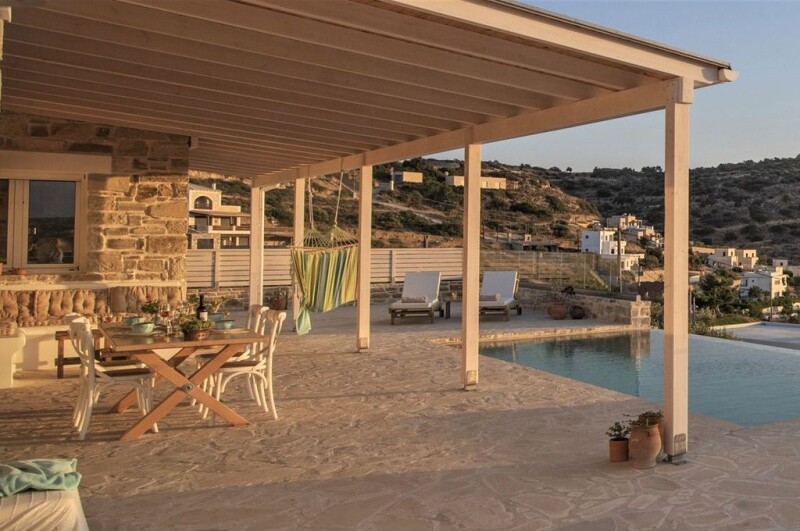 This amazing newly built villa for sale in Heraklion, Crete is located in the quiet village of Pitsidia in south Crete. The villa features 2 bedrooms and 2 bathrooms + WC, with a total living space of 157m², sitting on a 1166 m² private plot, providing forever unobstructed views of the Lybian sea and the mountain of Psiloritis. It is spanning on one level and has a fully equipped open-plan kitchen/living room area with fantastic sea views, stone walls and wooden details. Additionally, there are 2 spacious bedrooms with en-suite bathrooms where you can enjoy direct access to the pool and the magnificent view. Outside, the property features a private infinity pool, a wooden pergola covered dining area, private parking space and a storage room. The exceptional 360° unobstructed views of the sea, the mountains and the Messara plain, is ideal for moments of relaxation and serenity.