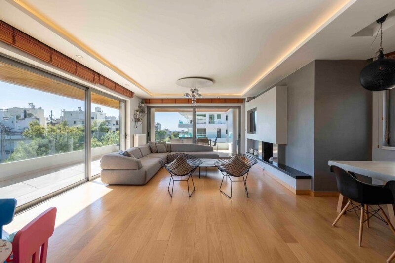 In one of the most intresting neighborhoods of Glyfada, known for its tranquility and security and at a prime location, this stunning apartment of 136 s.m is situated on the second floor and built in 2009, just 500 meters from the Golf course. The apartment enjoys a perfect south-east orientation, ensuring plenty of natural light throughout the day. As you enter the apartment, you are welcomed into a bright and spacious living room featuring an energy-efficient fireplace that adds both warmth and ambiance. The living area flows seamlessly into a pleasant dining space and a modern, fully fitted open-plan kitchen, making it ideal for both entertaining and daily living. From the large terrace, as well as from the living room, you can enjoy a beautiful sea view, adding a touch of serenity and charm to the property. A corridor leads you to the three bedrooms, including a master bedroom with its own en-suite bathroom, and two additional ensuite bedrooms, providing comfort and privacy for the whole family. In terms of additional features, the apartment offers two underground parking spaces, a storage room, and independent gas heating, ensuring comfort and convenience year-round. For added security and peace of mind, the property is equipped with an alarm system, and each room is fitted with air conditioning, ensuring a comfortable environment throughout the year. Due to its excellent location and comprehensive amenities, this apartment is perfect not only for those seeking a comfortable family home but also for investors looking for a property in a high-demand area. *The Energy Performance Certificate is in the process of being issued.