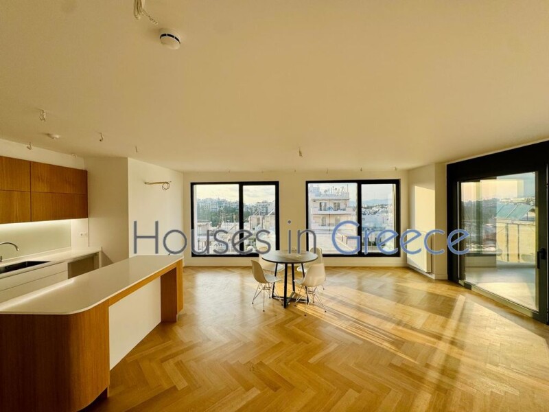 Wonderful newly built apartment of 121,5 sq.m. in the heart of Athens on the foot of the amenities with amazing view of the city, the sunset and the Acropolis! The apartment covers the all 6th floor, with a spacious 32.1 sq.m. balcony, a total of three bedrooms and marvelous living space. The apartment has a very special design with its enormous windows facing the view of Athens: the living area with its wooden floor and open kitchen will satisfy the most demanding. The kitchen is modernly equipped with quality electrical appliances, ideal to meet every need. We have 3 bedrooms; the main bedroom is with en suite bathroom and private room wardrobes, another bathroom and wc for guest. In addition, the apartment offers amenities such as parking, triple energy glazing, electric shutters, and smoke detection system, intercom and fire protection for the entire building. The apartment is in an excellent location, in a quiet street, few meters from shops necessary for the everyday life , but also restaurants, public services, school and kindergarten, the renewed square of Messolonghi and the refreshing green Park of Pagrati and about 15 minutes’ walk from the metro station "Evangelismos".