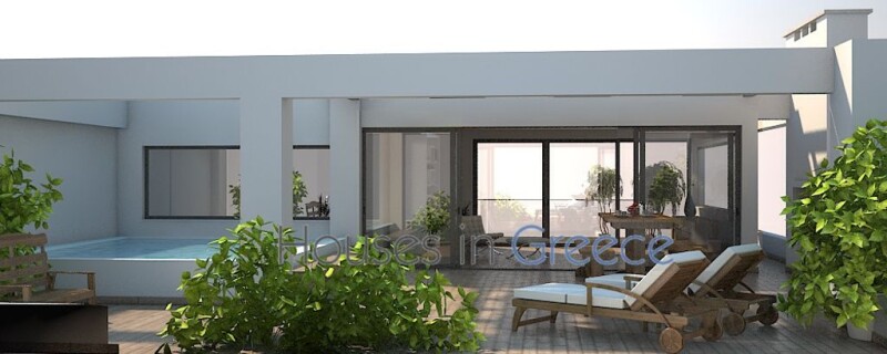 Luxurious brand new apartment with roofgarden overlooking amazing sea view and swimming pool, playroom with fireplace, large balconies perfect area to a quiet street 2 minutes from the center of Voula. Separate studio in the basement for staff.