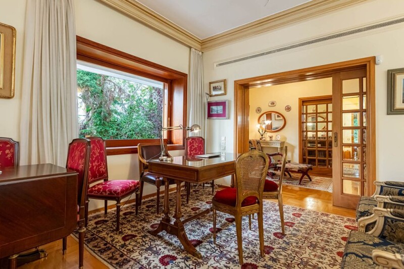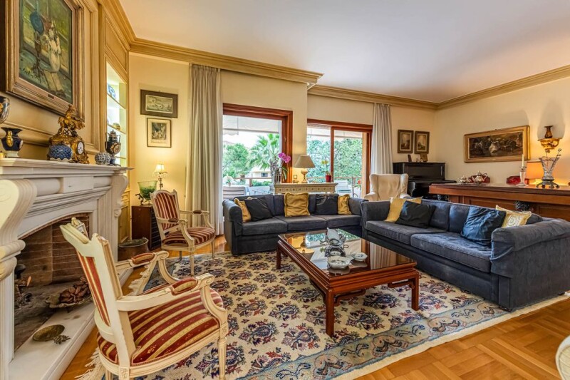 Second floor apartment of 167 sq.m., built in 1982, located at Dikigorika of Voula. It features a spacious and bright living room with a fireplace, a kitchen, two bedrooms with the apartment's square footage allowing for the configuration of two additional rooms. The prospect of converting it into four bedrooms is depicted through a layout, confirming the flexibility and feasibility of the idea in practice. It has one bathroom and one WC, with one of the bedrooms featuring a fireplace. There are three balconies overlooking the city and greenery, equipped with an alarm system and plenty of storage space. It includes a parking space in the courtyard. The building has a total of three floors, an elevator, and a communal garden. Building charatcteristics: • Plot area: 647 sqm • Total floors: 3 • Elevators number: 1 Interior characteristics: • Fireplace – yes • Alarm – yes • Floor material: Wood • Glazing: Single • Service area: 5 sq.m • Balconies: 3 • Bedrooms: 3 • Bathrooms: 2 • Parking slots: 1 • Exterior Storage room: 1 • Energy class: E This unassuming seaside suburb ranks among the most cosmopolitan postcodes on the Athens Riviera and it is one of the high profile areas to live in. Being a popular expat residential region, Voula is in the proximity of the capital and just a 25 minutes’ drive from the Acropolis, proposes an alluring spread of beachfront sights with island feel and lots of vibrant restaurants and clubs along with fun activities to plan for families, young professionals, and a high-end fashion crowd. • Subway station – Elleniko - 5km - 10m drive • Port - 16km - 31m drive • Beach - Paralia Apollonies Voulas Β– 2 km - 7m drive - 25m walk • Park – 1 km - 5m drive - 21m walk.
