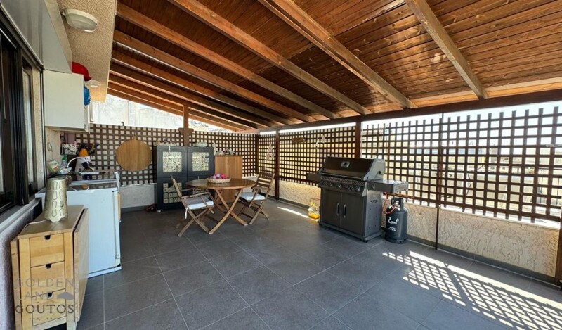For sale maisonette built in 1980 with a total area of 153 sq.m. The property is spread over two levels, specifically on the 4th and 5th floors, and consists of 3 bedrooms, 2 bathrooms, an office space that could turn into a 4th bedroom, a kitchen, and a spacious living room, all wooden floors. The heating of the property is autonomous with natural gas, while additional amenities such as air conditioning, solar water heater, boiler, and radiator contribute to extra comfort. The property is in need of renovation, but it is inhabitable for anyone interested in moving in immediately. It is bright and airy, with panoramic views of the square, sea, mountains, and greenery. The location of the property is excellent, being close to public transportation, the beach, church, supermarket, shopping center, and the city center. The property is a penthouse and offers various features such as mosquito window screens, awnings, an elevator, storage, attic, internal staircase, security door, intercom, alarm system, and a barbecue. Suitable for a holiday home, professional use, short-term rental investment for a source of income. PROPERTY ID: 892475.