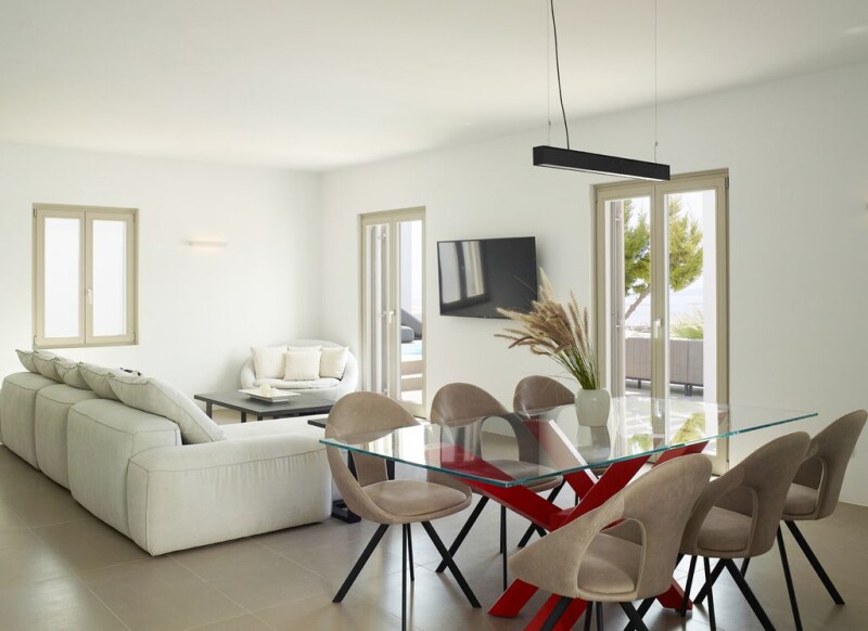 Villa Orienne Set in one of Paros’ most sought-after locations, Orienne is a masterpiece of design and comfort, offering spectacular views of the Aegean Sea and the enchanting sunsets that paint the horizon. Spanning 200 square meters, this exquisite villa seamlessly blends modern elegance with the timeless charm of the Cyclades, creating a haven for relaxation and indulgence. The villa boasts four spacious ensuite bedrooms, each offering a private retreat with its own luxurious bathroom. Designed for effortless indoor-outdoor living, Orienne features expansive sitting areas and dining spaces both inside and out. Large terraces, shaded pergolas, and a private pool invite you to unwind while soaking in the natural beauty of the island. Every detail of Orienne has been carefully curated to meet the highest standards of modern living. A fully equipped, minimalist kitchen with marble countertops and premium built-in Miele appliances ensures functionality meets sophistication. The villa is climate-controlled with a central cooling and heating system, supported by efficient heat pumps. High-quality Expa window frames and double-glazed glass provide insulation and uninterrupted views. Fully furnished with tasteful, contemporary pieces, Orienne is ready to welcome its new owners. Whether you're savoring a sunset dinner on the terrace or enjoying the comfort of the villa’s sleek interiors, every moment here feels extraordinary. This is more than just a home; Orienne offers a lifestyle of unparalleled luxury in the heart of Paros. *Legal Disclaimer:* The photographs included in this presentation depict a previously sold home and are intended for illustrative purposes only. The home currently for sale is similar in design and features but will be completed in April. Specifications and finishes may vary. Please consult with the listing agent for the most accurate and updated information regarding the property.