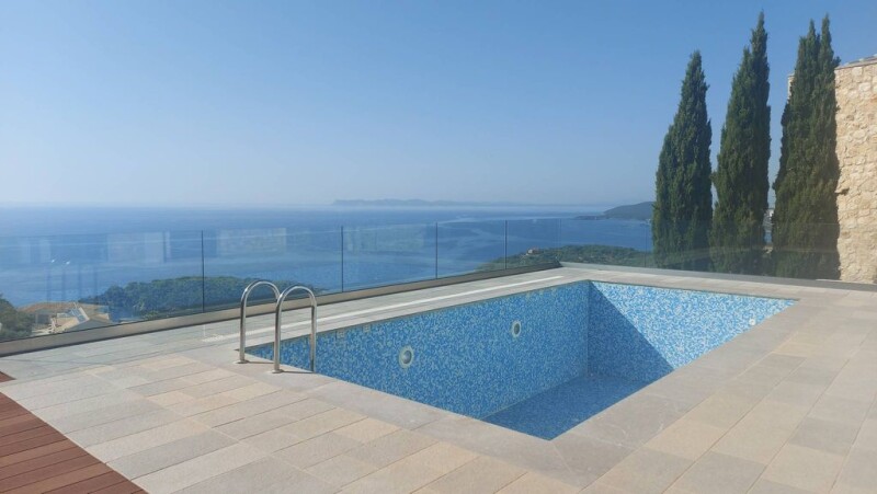 SYVOTA THESPROTIAS Luxury furnished villa of 130 sqm for sale on a plot of 600 sqm built in 2009 with an unobstructed and unlimited view of the sea and the famous beach of Agia Paraskevi in Syvota as well as Corfu and Paxos in the distance The villa is on 3 levels and consists of 4 bedrooms, a living room-kitchen unit, 3 bathrooms, large terraces and a large outdoor stone-built area with a pool and trees, plants throughout the outdoor area of the villa The villa offers privacy with unlimited sea views and a very beautiful outdoor space with the main feature being the very nice pool and the various plants and trees It has car parking as well as storage space and is fully furnished and equipped with all the necessary electrical appliances Distance from the organized beach of Agia Paraskevi in Syvota 1000 meters and from the village of Syvota 2 kilometers.