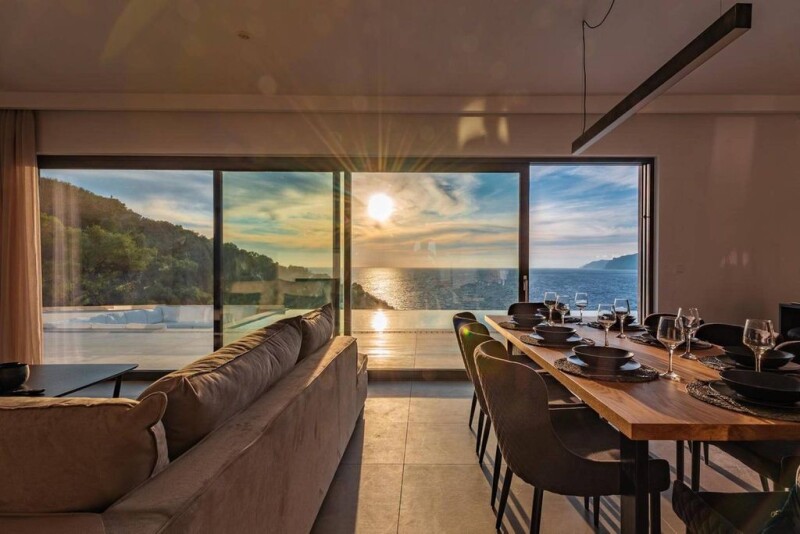 This stunning villa is a luxurious hideaway, ideal for those looking to spend their holidays in ultimate peace and comfort. It was strategically designed so that every room would enjoy the breathtaking views. Immediately apparent from the open-plan living area are the wall-to-wall glass windows leading out to the infinity pool and the sunken sitting area beside it. There are plenty of spacious outdoor areas around the pool to relax, including a built-in barbeque and outdoor dining area. The villa's 4 bedrooms are bright and spacious, fully airconditioned, all have ensuite bathrooms and direct access to the swimming pool. The villa is within walking distance from a secluded beach and a 10-minute from the charming village of Pentati, with a few excellent tavernas. Modern, stylish simplicity along with privacy, seclusion and stunning sunsets. This property is a true gem.