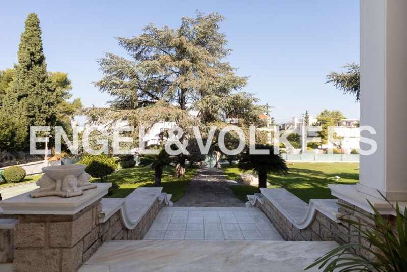 The Majestic, located in Paleo Psychiko, is an imposing neoclassical property designed in 1956 and completed in 1960. The land was originally purchased from the British state by one of Greece's best-known shipping families. This elegant and prestigious mansion of 758m2 is located on a rare for the area 3179m2 plot surrounded by an impressive and lush garden with beautiful trees and a large swimming pool of 136m2. The property itself is a piece of modern Greek history in which the best materials have been used. The stairs leading to the entrance are made of Pentelikon marble, while the entrance door was custom made of bronze and iron. Entering the house, we find majestic spaces, painted ceilings, different types of flooring in each area, such as Pentelikon with inlaid stripes of Tinos marble in the hall or Tinos marble with inlaid brass in the foyer where the grand staircase of Rhodes marble and the unique stained glass window are located. The main living room gives a feeling of warmth and elegance while the dining room with its impressive ceiling and chandelier can comfortably accommodate 16 people. From the main living room we go out to the large terrace that leads to the pool and the garden. The Byzantine tiles of the pergola were selected one by one from old Athenian houses. In the garden there is also a separate house for the security staff as well as changing rooms and a bathroom with shower near the pool. The first floor hosts all the family's private spaces, while on the lower level there is a gym, guest house with independent entrance, parking and other auxiliary spaces. Palaio Psychiko is one of the most beautiful Athenian suburbs, just 5 km from the city centre. It was designed according to the English Garden City model, as a purely residential area, in the begining of the 20th century. Here, there are many remarquable high-standard villas, as well as some unique examples of modern greek urban architecture.In the Community of P.Psychiko, there are numerous Embassies, Consulates as well as some of the best private schools. With the appropriate traffic regulations and other environmental interventions, P.Psychiko managed to keep air pollution low and maintain its unique character and prestige. Finally, its residential quality, high demand but also its extremelly easy access to Kifissias and Mesogeion Ave., Attiki Odos and the Airport, make this area a top investment choice.