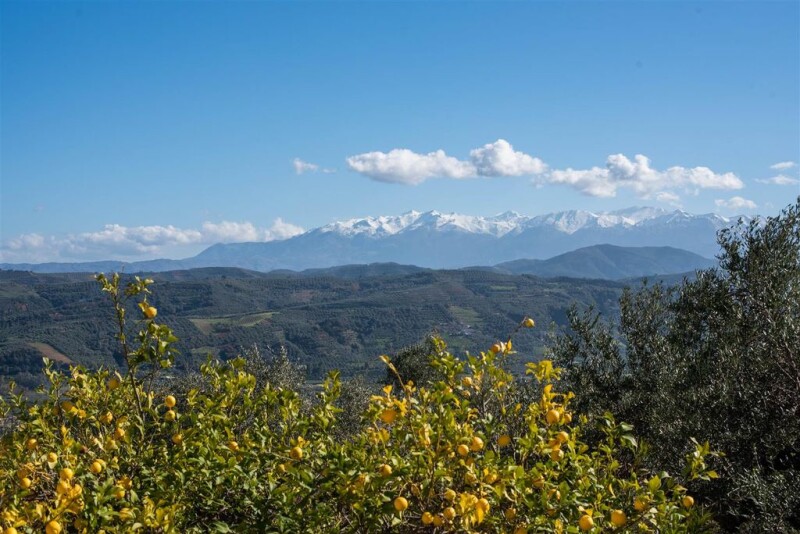 This is a stone villa for sale in Kolymbari, Chania, Crete, located in the village of Vouves. The total living space of the villa is 205 m², sitting on a 4941 m² private plot, offering 3 bedrooms and 2 bathrooms plus 2 WCs. The interior design is adorned with arches and wooden ceilings and on the first floor a large terrace offers stunning unobstructed views of the sea and the White Mountains. Right behind the property there is an independent studio consisting of 2 bedrooms and 1 bathroom, but also a kitchen and living room , making it perfect for a guest house or even renting. Outside, the property features a swimming pool, several sitting areas with sunbeds, umbrellas and outside furniture, but also a big tiled covered terrace that offers stunning views. The slope of the plot secures panoramic, unobstructed, stunning mountain and sea views. Additionally, it contains several mature productive olive and fruit trees, such as apricots and oranges. HIGHLIGHTS • Living Space 205 m2 • Plot of 4941 m2 • 5 Bedrooms & 3 Bathrooms+ 2 WCs • Mountain & Sea Views • Swimming pool • Central Heating • Air-condition Units • Independent Studio • Landscaped Garden •2 Storage Rooms.