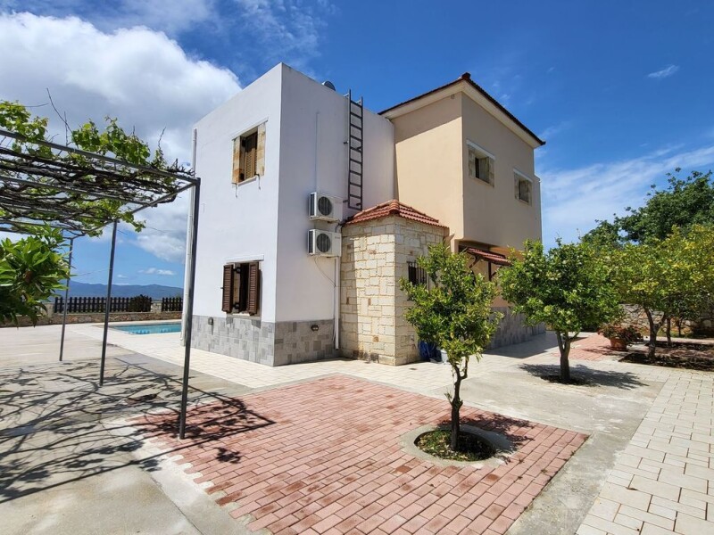 For sale two detached houses in Chania built on a plot with a total area of about 1600 m2. Each house has its own private pool and landscaped garden. The property is located in the beautiful village of Kefalas in Apokoronas region. It offers great White Mountains and countryside views. The first villa has an area of 135 m2 and consists of 4 bedrooms, 2 bathrooms, kitchen and living room with dining area. Kitchen features full oven, hob fridge freezer, microwave, dishwasher and washing machine. The living room offers a cozy fireplace, comfortable sofas, dining area and patio doors. Bedrooms Bedroom 1: Double bed Bedroom 2: Double bed Bedroom 3: Twin bed with en-suite bathroom Bedroom 4: Twin bed Bathrooms Bathroom 1: Family bathroom with a bathtub and W/C Bathroom 2: En-suite bathroom with a shower and W/C Private swimming pool Length: 10.0 m Width: 5.0 m Depth deep end: 1.85 m Depth shallow: end 0.8 m The second villa has an area of 130 m2 and consists of 3 bedrooms, 2 bathrooms, kitchen and living room with dining area. Kitchen features full oven, hob fridge freezer, microwave and dishwasher, granite work top, filter coffee maker and washing machine. The living room offers a cozy fireplace, comfortable sofas, dining area and patio doors. Bedrooms Bedroom 1: Double bed single bed with en-suite bathroom Bedroom 2: Double bed Bedroom 3: Twin bed Bathrooms Bathroom 1: En-suite bathroom with a bathtub and W/C Bathroom 2: Family bathroom with a shower and W/C Private swimming pool Length: 10.0 m Width: 5.0 m Depth deep end: 1.85 m Depth shallow end: 0.8 m Villas are within walking distance to taverns, mini markets and coffee shops. The nearest local beach is in Ombrosgialos at 5 km and Almyrida at 8 km. Vamos with more shops, restaurants and other amenities is only 5 km away. The city of Chania is at 35 km.