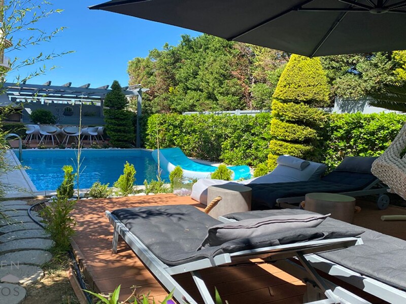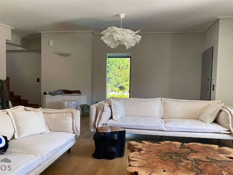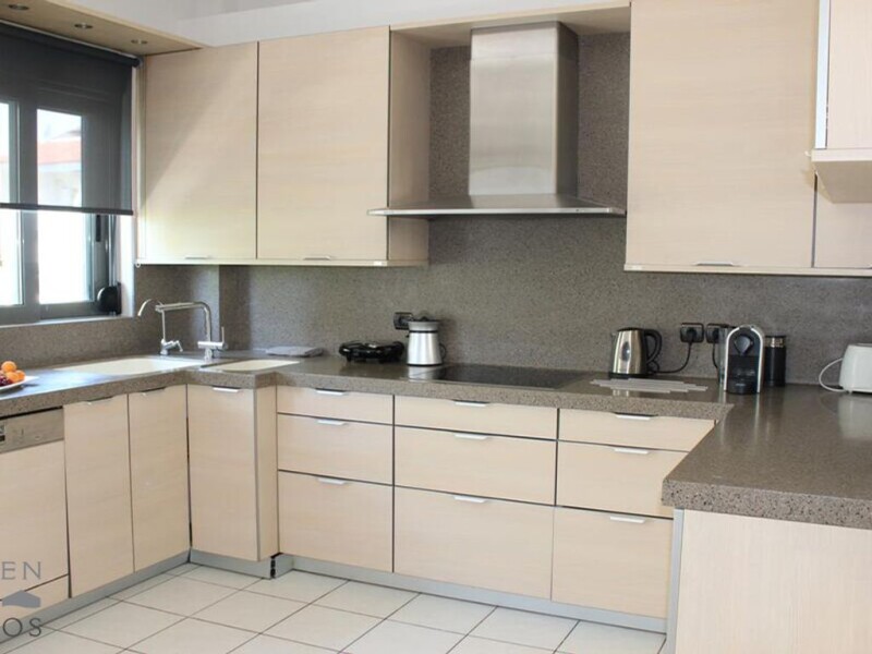 This modern private house of 300sqm is located in Glyfada, in a tranquil neighborhood. It is bright, airy and sunny. It was built in 2002 and consists of 4 levels connected with interior stairs and an elevator. The first thing that captures the visitor’s attention in this house is its beautiful garden with a big swimming pool and a deck equipped with sunbeds along with a BBQ, a wood oven and a fully equipped bar. On the ground floor level there is an elegant spacious living room with a fireplace, the dining room, a fully equipped kitchen and a guest bathroom. On the 1st floor, there are 4 bedrooms, one of which is a master bedroom, while the other 3 bedrooms share a bathroom. All 4 bedrooms have direct access to a balcony. The top floor, consists of a spacious master bedroom with a small balcony on the one side and a terrace with a BBQ and a hammock on the other side. The lower level has a small room that can be used either as a staff room or a storage room. There is one small bathroom and many wardrobes here. In addition, there is a spacious room that can be used as a playroom or a gym. Amenities Autonomous Heating | Solar Water Heater | A/C | Elevator | Fireplace | BBQ | Wood Oven | Swimming Pool | Storage Room | Parking Location This modern house is located in a quiet neighborhood very close to the Golf area of Glyfada and this lively suburb’s famous shopping center. At the same time the residence is blessed with privacy and it is just a short driving distance away from the beach, with easy access to public transportation such as metro, bus and tram. Aside from that, Glyfada area offers a variety of lifestyle activities including amongst other water sport facilities, famous restaurants and bars and seaside night clubs. PROPERTY ID: 7-1089.