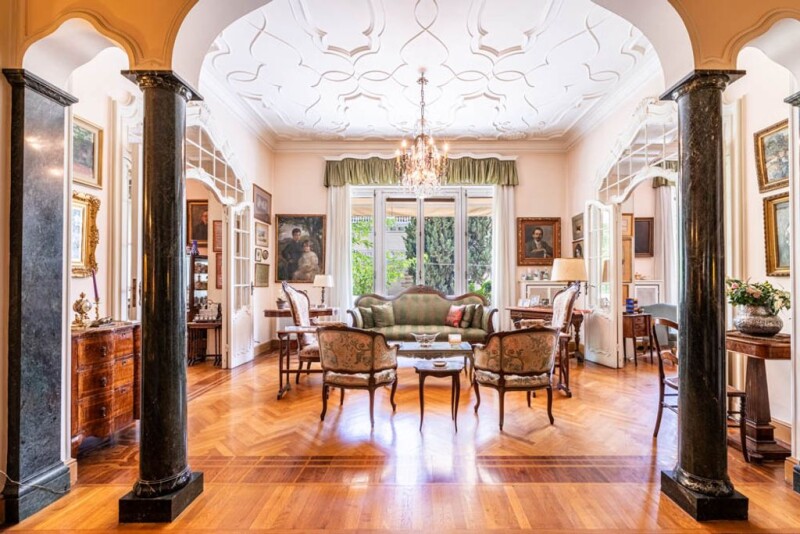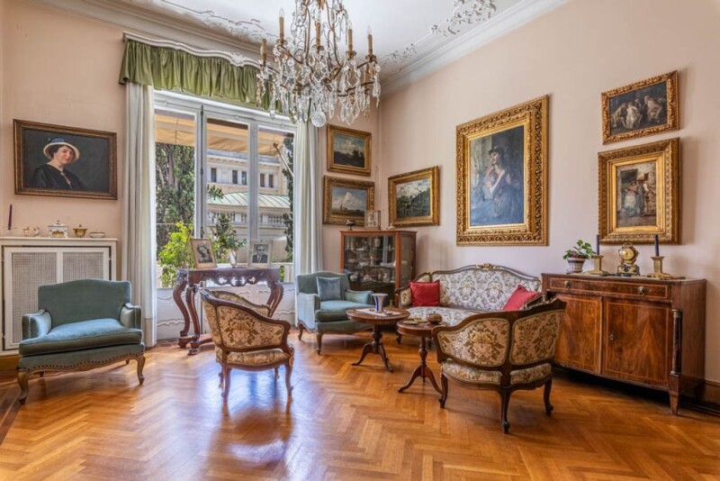 In the area of the Presidential Palace, a breath away from the Maximou Building, is this residence of unique aesthetic. It is developed on two levels which can remain unchanged or can be separated with different entrances. One, on the 1st floor of the building, with the main rooms, the 4 large bright bedrooms, the 2 main bathrooms, the kitchen and the guest toilet. And the other one, on the ground floor with utility rooms plus an additional bedroom with en-suite bathroom for any future use. The main rooms enjoy natural light due to the central position of the balcony, which highlights the uniqueness of the interior morphological elements. At the same time, the architectural structure underlines the solidity of the mansionary aspects of this residence. The interior decoration was constructed during the construction of the building in 1935-1936 in "Palazzo" style by skilled personnel hired and brought from Italy in order to to complete it. This included the plaster ceiling reliefs, the carved wood coffered doors, the marqueterie oak floors, the marble fireplace and the the arch with the imposing green Tinos marble columns. The interior, unaltered and without aesthetic interventions, is not classified as a preserved building. So it remains at the discretion of the future owner to maintain and preserve the authentic character of the apartment, enjoying the prestige emitted by its numerous original designs. *The electronic identity card and energy efficiency certificate of the property are currently being issued.