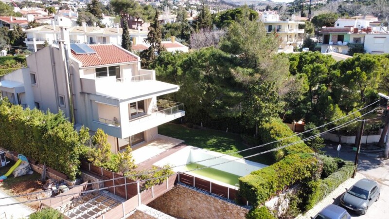 For sale in Pendeli in a a quiet, leafy residential suburb, just 25 minutes from Athens and near international schools, This East/South and West-facing house stands out for its high-quality materials and its functional layout, which will offer its new owners an appreciable quality of life. This home boasts perfect thermal insulation and has a class B energy certificate, a high-performance exterior and interior security system with remote control thanks to its smart home system, and a private lift. The large living room with its fireplace opens onto the swimming pool, while the dining room communicates with the garden. The kitchen, with its central island and Corian worktops, is equipped with top-of-the-range appliances. A guest WC completes the level. Upstairs are three spacious bedrooms with en suite bathrooms and wardrobes. The master bedroom also has a walking closet and a bathroom with bath and shower. The attic offers an elegant study with a fireplace, a bathroom and a private terrace. The basement accommodates a spacious three-car garage with ample storage and an independent apartment that opens onto a large enclosed courtyard with beautiful stone walls. The flat comprises a living room, bedroom, bathroom, kitchenette and separate toilet. Additional facilities include a gym, laundry room and boiler room. The swimming pool equipment room is accessible from the garden. The residence has beautiful oak parquet flooring, integrated lighting and a built-in hot/cold air-conditioning system.