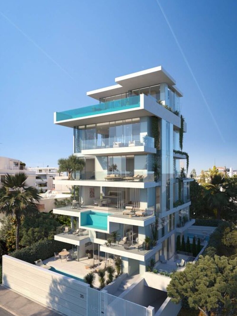 Darius, a sophisticated apartment in Voula, is designed to maximise its breathtaking views of the Athenian Riviera. The second-floor residence features clean lines and an expansive balcony that extends across the façade, perfectly combining both indoor and outdoor living. Ideally situated just a 5-minute stroll from the beachfront and a short walk from the vibrant commercial center, Darius seamlessly blends urban convenience with architectural elegance, offering an elevated living experience. The artistry of the design lies in the details that exemplify high-end aesthetics with functionality. The natural tones of the decor and the abundance of sunlight streaming through sleek frameless windows brings about an inviting atmosphere that immediately captures the attention. Darius offers a spacious living environment featuring two luxurious master suites, each with its own private en-suite bathroom, plus a convenient guest bathroom. Light filled spaces open onto beautiful views of the park. High ceilings, full-length windows, and a private 8sqm pool create an atmosphere of expansive luxury within Darius. This privileged location offers effortless access to the cosmopolitan energy of Athens center, the exclusive Astir marina, the luxurious One & Only Aesthesis Resort, and nearby beaches. Within easy reach there are a wide variety of amenities, such as watersports, water activity resorts, quaint restaurants and waterfront cafes, as well as high-quality healthcare facilities. Included with the apartment is underground parking with electric charging stations, top-tier security, and advanced home automation. Currently under construction completion is schedule for December 2026.