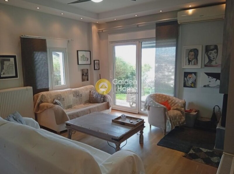 Detached house with a panoramic view, consisting of two independent houses, with two different entrances. A loft-maisonette of 40 sq.m. with garage and garden and a house of 96 sq.m. with 3 bedrooms fully equipped and functional. Fully furnished, with built-in electrical appliances, with internal roof insulation, 2 external storerooms with shelf structures and the boiler room with 1 ton water and 1 ton oil tanks with a 40,000 Kcal capacity burner, window frames aluminum - PVC with double glazing and screens and electric shutters with remote control, external electric remote controlled awning - pergola 12 sq. m. in the garden of the first building, ready construction 12 sq. m. cage - house for domestic pets, outdoor use available parking for 3 - 4 vehicles opposite the entrance. Space available for construction of a 4 x 13 sq m swimming pool between the 2 buildings, landscaped garden of building A' with natural hedges and trees, landscaped garden of building B' with independent sitting area in its garden, landscaped secure perimeter fencing of the property, in automatic irrigation installation around the perimeter of the plot with 2 pressure machines to manage the irrigation water pressure, built-in outdoor barbecue in the garden, unlimited view: east to the pine-covered hill of Voros, south and west to the islets veins of the Argosaronic gulf, north in the valley of Agia Marina, wonderful sea view. The beach of Agia Marina is organized with beach bars - cafes, fish taverns and restaurants, super markets and shops are nearby, 800 meters from MMM stops, with destinations Athens or Koropi metro or to Sounio, it is 7 km from Vari - Varkiza and 15 km from the international Airport.