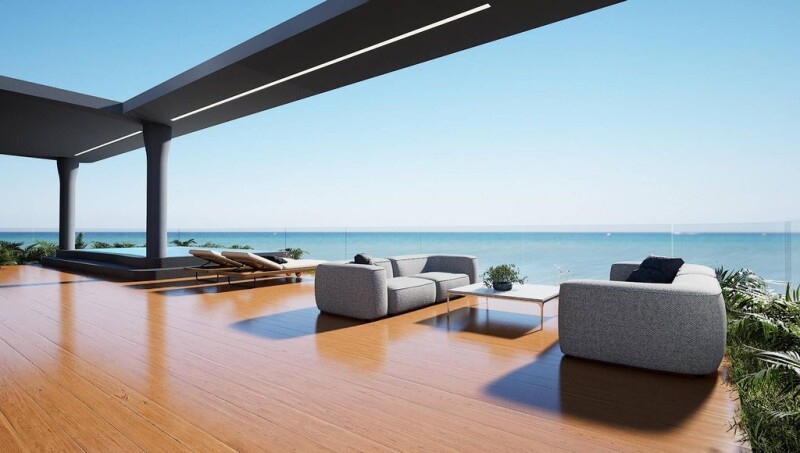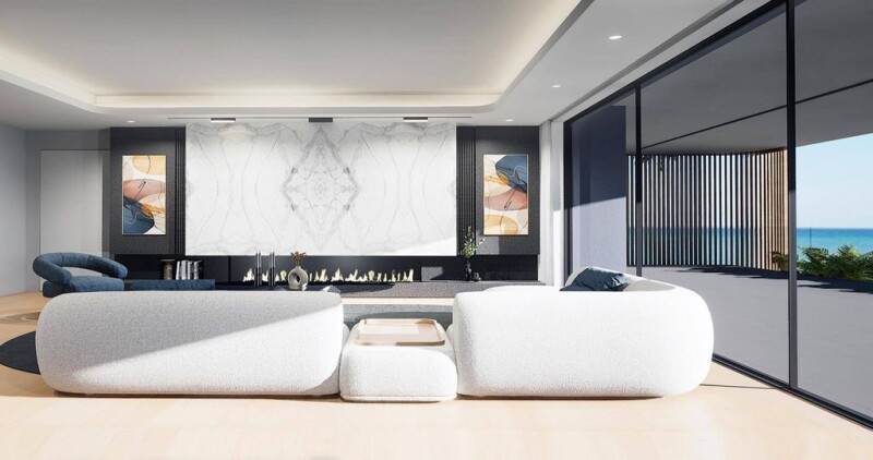 This exceptional penthouse located on the 4th and 5th floor is a distinctive blend of tranquil nature and urban elegance. Designed to create a sense of peace and harmony, the entire 350 sq.m is a masterpiece. The 4th floor (200 sq.m) comprises of three generously sized bedrooms with en-suite bathrooms, including a master bedroom at the front of the apartment with stunning sea views. Additionally, there is an open-plan kitchen with a convenient separate balcony and a storage room, a W.C, and a living area with a modern fireplace. The fireplace is a remarkable feature of the penthouse, expertly crafted with luxurious marble claddings and a custom-made wooden construction. Floor-to-ceiling windows stretch across the entire length of the living room, providing breathtaking views of the Aegean Sea. The windows lead to large balconies that encircle the penthouse, offering a unique living experience during the warmer months. The vast balconies are perfect for relaxing outdoor seating or dining, and one end of the balcony is designed for planting.