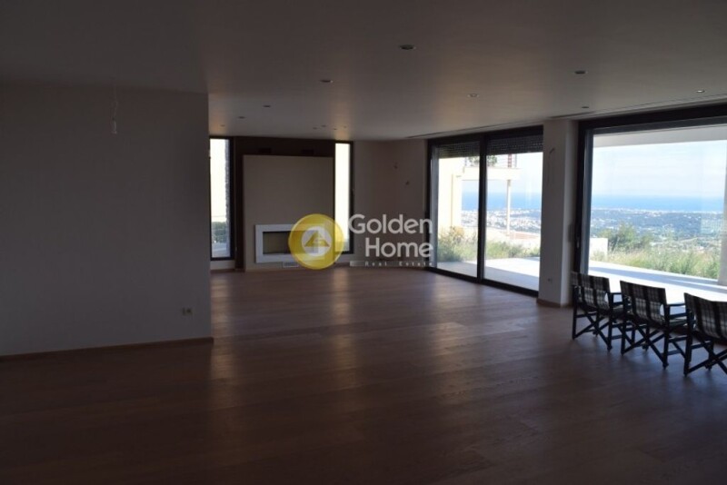 Nea Makri, Neos Voutzas, Detached House For Sale, 685 sq.m., On a plot of 1070 sq.m., Condition: Amazing, Floor: Ground Floor, 3 Level(s), 5 Bedrooms (1 Master), 1 Kitchen(s) , 4 Bathrooms, 1 WC, Heating: Individual - Heat Pump, View: Sea, Year of construction: 2009, Energy Certificate: A+, 6 parking spaces, Floors: Parquet, Frames: Thermal switches, Elevator, Security door, Alarm, Intercom, Storage, Fireplace, Night current, Satellite Antenna, Internet, Playroom, Internal Staircase, Double Glazing, Screens, Verandas, Pets Allowed, No Shared Rooms, Luxurious, Airy, Front, Bright, Underfloor, Air Conditioning, Boiler, Garden, newly built,Painted, minimal construction, Excellent single-family house in a unique location with an unlimited sea view, The unique architectural design and high-quality construction single-family house extends to: (3 levels connected by an internal elevator and has full management control (smarthome) from a central console.), The house consists of: (Ground floor, 205sq.m. at the same level as the garden, with a large living room, independent kitchen and guest w/c.), 1st floor: (195sq.m., with 3 bedrooms, one of which is a master en suite, 1 office and 1 more very large bathroom.), Semi-basement floor: (285sqm, includes independent apartment with 1 bedroom, bathroom and living room - playroom, underground garage 6 seats, laundry, warehouses and auxiliary spaces.), It also has a fan coil cooling - heating system on all floors and an alarm system throughout the building, A swimming pool can be built in its large garden., Close to: schools, Distance from: Airport (m): 11800, Sea(m): 2500,.