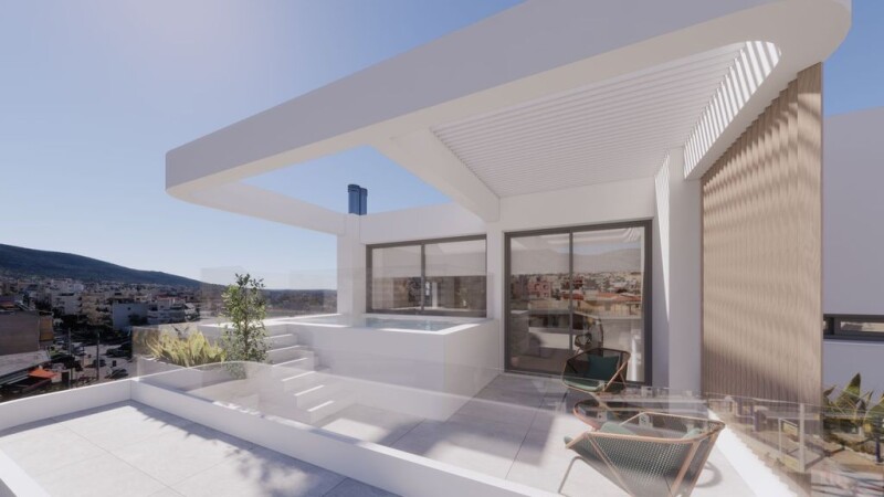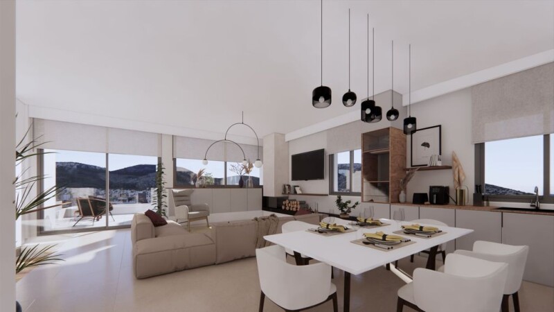 This exceptional 177 sq.m penthouse spans the 5th and 6th floors, offering a blend of luxury and convenience in Elliniko. Featuring four bedrooms and four bathrooms, the residence provides ample space for comfortable living. Situated 3,000 meters from the sea, the penthouse offers breathtaking views of the Saronic Gulf and Mount Ymittos, along with easy access to the Athenian Riviera and Ellinikon Metropolitan Park. Enjoy nearby modern sports courts, playgrounds, and a vibrant local market, all accessible via convenient public transportation. The penthouse boasts an A++ energy class, ensuring energy efficiency and a reduced environmental footprint. High-quality features include thermally insulated aluminum frames, a thermal facade, autonomous heating, and a cooling-heating pump fan coil system. An energy-efficient fireplace adds warmth and charm. Enhancing the luxury, a private swimming pool sits in front of the living room area, accompanied by a spacious private terrace perfect for relaxation and entertaining. Additional amenities include air conditioning, a secure door, a triple energy solar water heater, and a garage equipped for electric vehicle charging. Storage facilities and accessibility for people with disabilities further elevate the building's appeal. This extraordinary penthouse combines high-end design with practicality, offering a truly unique and luxurious living experience.