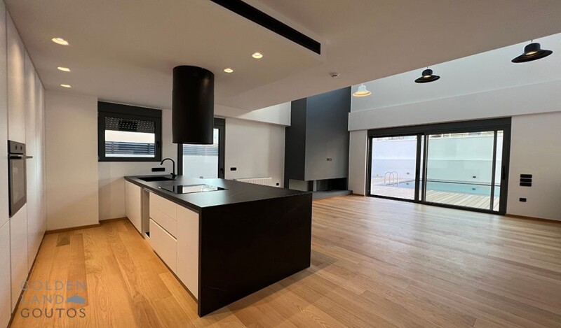 A luxury ground and first floor maisonette of 129sqm with minimal style, in the upper area of Glyfada. This modern maisonette consists of a bright living room, with fireplace, an open plan kitchen, 3 master bedrooms, 3 bathrooms and a guest wc. It is a newly built property; it was built in 2021. The residence also features a beautiful garden and a swimming pool. Overall, it is an elegant and value for money property that promises a high quality lifestyle experience. FEATURES Wooden flooring | Fireplace | Heat pumps | Fan coil | Mosquito window screens | Electric shutters | Double glazed windows | Alarm system | Electrical appliances | 1 closed parking space | Garden | Swimming pool.