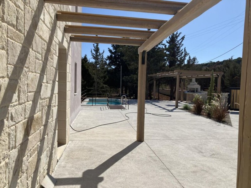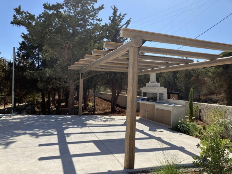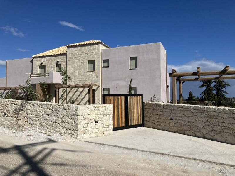 Modern three-level villa in Apokoronas for sale. The house has a total surface of 162.81 sqm and it features private swimming pool, landscaped gardens and stunning views. On the ground floor there is a large living-dining and kitchen area. Also there are two ensuite bedrooms with access to balcony and gardens. Moving upstairs we find two additional ensuite bedrooms with access to the terrace and offering spectacular sea views. The swimming pool area is tiled and features a bbq and dining area. The scenery of the pool among the trees and plants is very natural and astonishing. It offers space, privacy, views and comfort. In the basement one finds the parking space while there is remaing space that can be configured according to the needs of the buyer and become an extra bedroom, a storage room, a play room, etc. The property has been built according to the most modern standards and has: thermal insulation, energy efficient window and door frames, alarm system and cameras, heating and air conditioning with independent and autonomous control of each space, remote control via Smartphone, recirculation of hot water through a heat pump and solar water heater, water tank, electric car charging station. The villa has easy access, sea views, beautifully landscaped gardens and is ready to move in. It can be used as a holiday home either for private use or for touristic exploitation. Also, it can be sold with the neighboring villa (, especially to secure a higher rental income. Features Fitted kitchen|Fitted wardrobes|Telephone line|Satellite TV|Internet access Security door|Fenced|Stone walls Central Cooling & Heating System Energy class: Α|Solarwater heater|Insulation|Double-glazed Outdoors Parking area|Water storage tank|Landscaped gardens|BBQ area|Private pool Sea & Mountain Views.