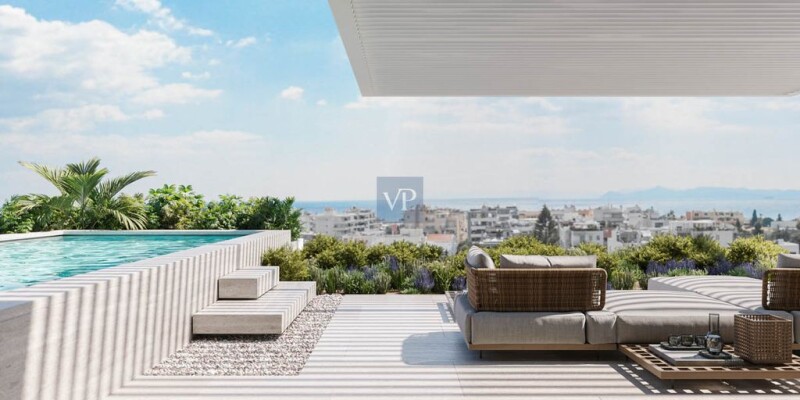 Almandine Luxury Penthouse in Kato Glyfada with sea view Almandine Luxury Penthouse in Kato Glyfada with sea view Presenting a rare opportunity to own a luxury penthouse maisonette that spans the 4th and 5th floors, covering an expansive 214 sqm in the heart of vibrant Glyfada along the Athens Riviera. This extraordinary masterpiece, currently under construction, redefines opulence and luxury living. Boasting a unique design that harmoniously blends modern aesthetics with practical functionality, this lavish residence offers an exclusive open horizon view that stretches endlessly, providing a panoramic spectacle of the surrounding beauty. Bathed in an abundance of natural light, the interior is enchanting, accentuating the spaciousness of the property. This sea-view penthouse maisonette in Glyfada, Kato, offers minimal aesthetics, exclusive use of a roof garden and pool, a large reception area, a living room with a fireplace, an open-plan kitchen, 3 master ensuite bedrooms (1 with a walking closet), 3 bathrooms, 2 WC, large verandas, wooden floors. A fireplace adorns the living room, creating welcoming atmosphere for both relaxation. Meticulously crafted to meet the highest modern standards, the space seamlessly fuses sophistication and comfort. The crowning jewel is the private roof garden, a sanctuary above the city, featuring a swimming pool that invites residents to unwind while enjoying breathtaking views of the Athens Riviera. This outdoor haven provides an unparalleled setting for al fresco dining, social gatherings, or simply basking in the Mediterranean sun. Practicality meets luxury with two underground parking spaces and additional storage, ensuring both convenience and security. The energy certification, rated A+, gas autonomous underfloor heating, air conditioning with a heat pump, and solar panels , reflects a commitment to sustainability, efficiency, and environmental consciousness. Just 200 meters from the beach, this residence is the epitome of luxurious living on the Athens Riviera.