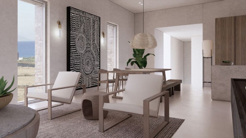 This villa IRIGONI (K2) is located in Ysterni, int the north-eastern part of the island of Paros very close to Tsoukalia and Molos Bay. Molos beach is only a few hundred metres from the house. Naoussa can be reached in only a few minutes by car and offers all the amenities with many restaurants, shops, and night life. The architecture of the building complex is based on the bioclimatic and minimal design, respecting traditional architectural characteristics and local materials. In the same complex you will find the following same villas: Villa K1: 1.500.000 € | living area: 189 m² | bedrooms: 4 | plot: 4.494 m² - ready for occupancy Villa K3: 1.150.000 € | living area: 142 m² | bedroom: 2 | plot: 2.233 m² - still under construction Villa K4: 1.500.000 € | living area: 192 m² | bedrooms: 4 | plot: 2.992 m² - still under construction.